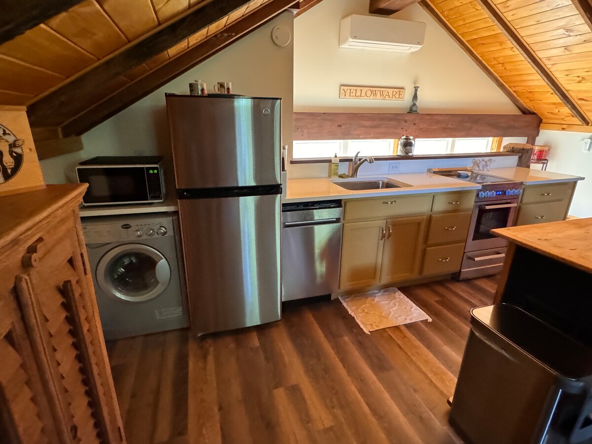 El granero fue construido en 1810 como granero de heno y se convirtió en un acogedor espacio habitable en 2017. Es una mezcla de rústico y moderno, todo en uno. Esta estancia única ofrece una escapada tranquila y silenciosa del bullicio de la vida cotidiana. Acurrúcate en el espacio para relajarte, disfrutar de vistas a la naturaleza, meditar, hacer yoga o leer. Aventúrate por cualquiera de las rutas de senderismo cercanas, restaurantes locales, cervecerías artesanales o visita los Finger Lakes. ¡Añade servicios para mejorar tu viaje de sanación! Envíanos un mensaje para obtener información.