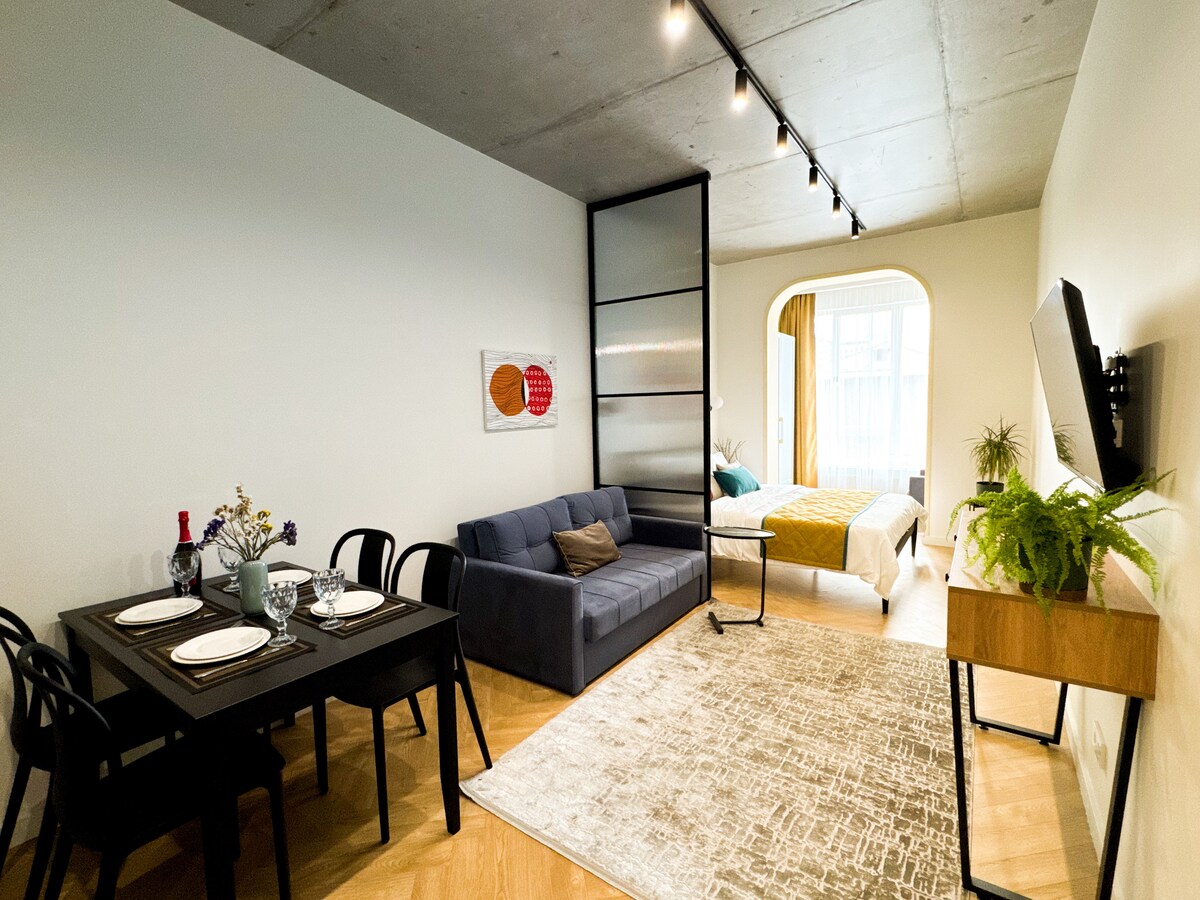 Alójate con tu familia en el centro, cerca de atracciones con acceso a toda la infraestructura de la ciudad desde el metro, autobús a scooter. Elegante, hecho en un moderno estudio de diseño de 33 metros cuadrados está listo para ofrecerte la comodidad de un colchón con 512 resortes independientes, un sofá, plegable en un cómodo lugar para dormir y una cama de sillón. Diseño único, espacio cuidado: ¡todo está creado para tu comodidad!