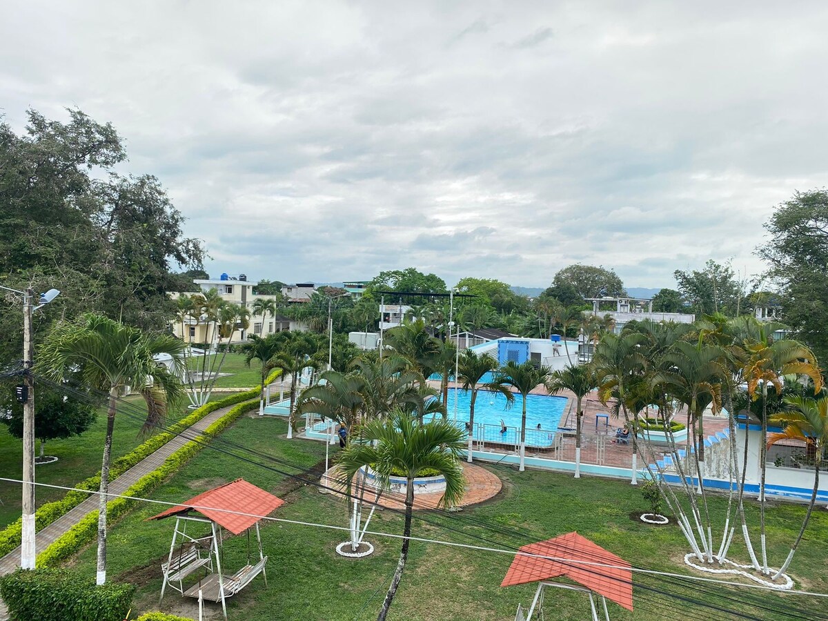 Relájate con toda la familia en este tranquilo lugar en medio de la naturaleza, con clima cálido y maravillosas áreas comunales, el lugar perfecto para descansar del ruido de la ciudad. Ubicada en una zona con clima tropical húmedo cuya temperatura fluctúa entre los 21 a 30 grados centígrados, es un lugar ideal para avistamiento de aves y de otra fauna como anfibios, insectos, etc. NOTA: la cocina y ducha son eléctricas por lo que debido a los cortes de energía podrían no estar disponibles.