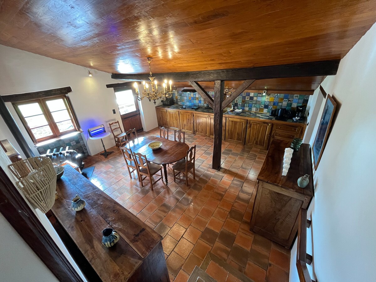Bienvenido a la casa rural de Aurélie, restaurada con buen gusto, situada en la planta baja de su casa con entrada independiente. Esta acogedora casa de campo ofrece una terraza privada y una hermosa vista del casco antiguo. Incluye una cocina equipada, un dormitorio con cama de matrimonio, un baño con inodoro y aparcamiento privado. Se proporcionan sábanas y toallas de baño. Lavadora y secadora común con la propietaria. Disfrute de la tranquilidad y explore la ciudad de Uzerche, sus callejuelas medievales y sus sitios imprescindibles.