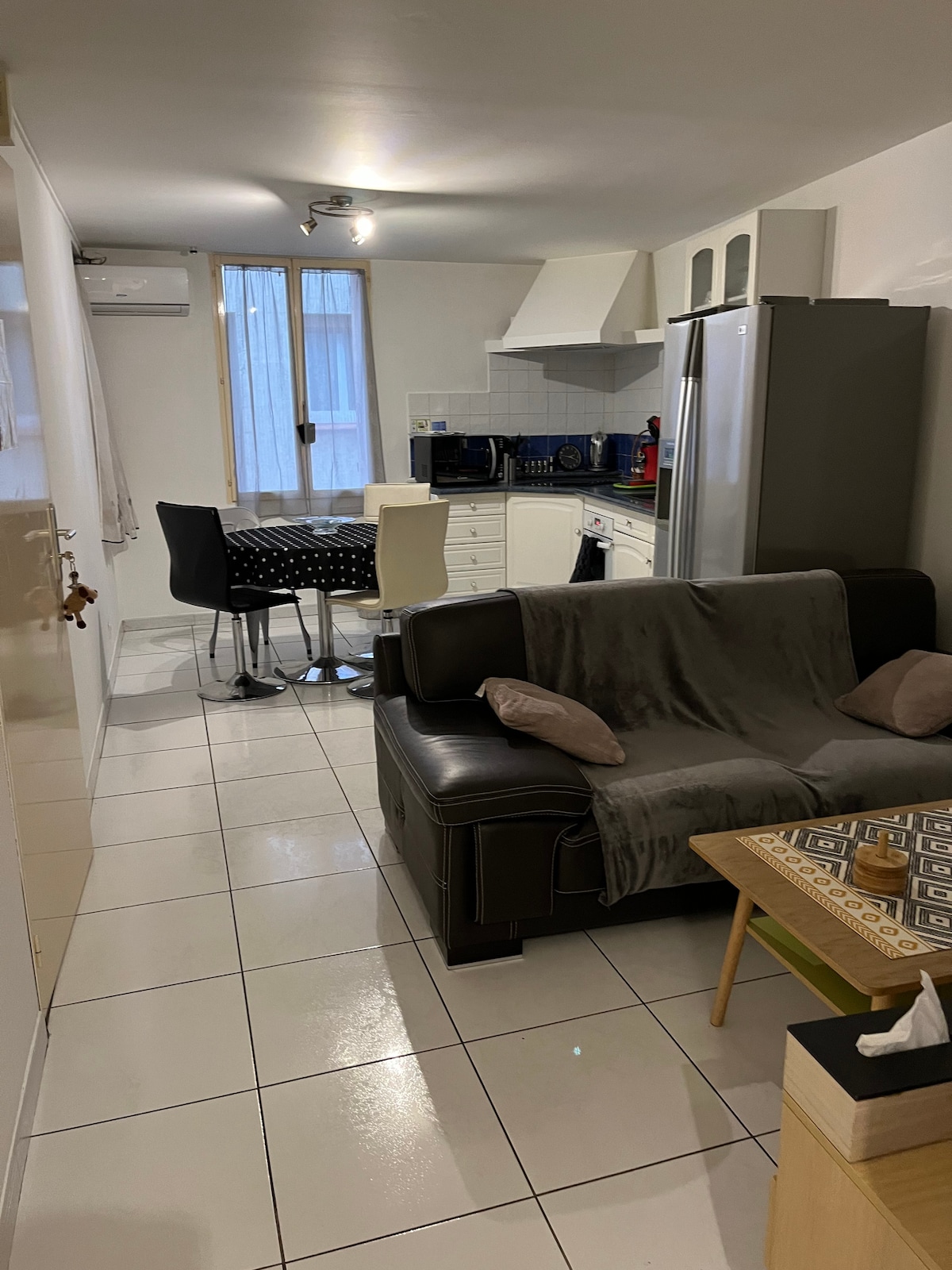 Apartamento con aire acondicionado, 40 m2 reformado en 2018, de una sola planta , con todas las comodidades, muy luminoso, tranquilo. Situado en un encantador pueblo cerca de Perpiñán. El alojamiento consta de: - Cocina equipada (frigorífico-congelador, horno, campana extractora, lavavajillas, microondas, cafetera Senseo, hervidor de agua...) sofá cama de 2 plazas, TV - WiFi de alta velocidad - 1 dormitorio con cama (140x190), vestidor grande - 1 baño con ducha italiana, lavabo, inodoro, lavadora, secador de pelo - Aparcamiento privado gratuito