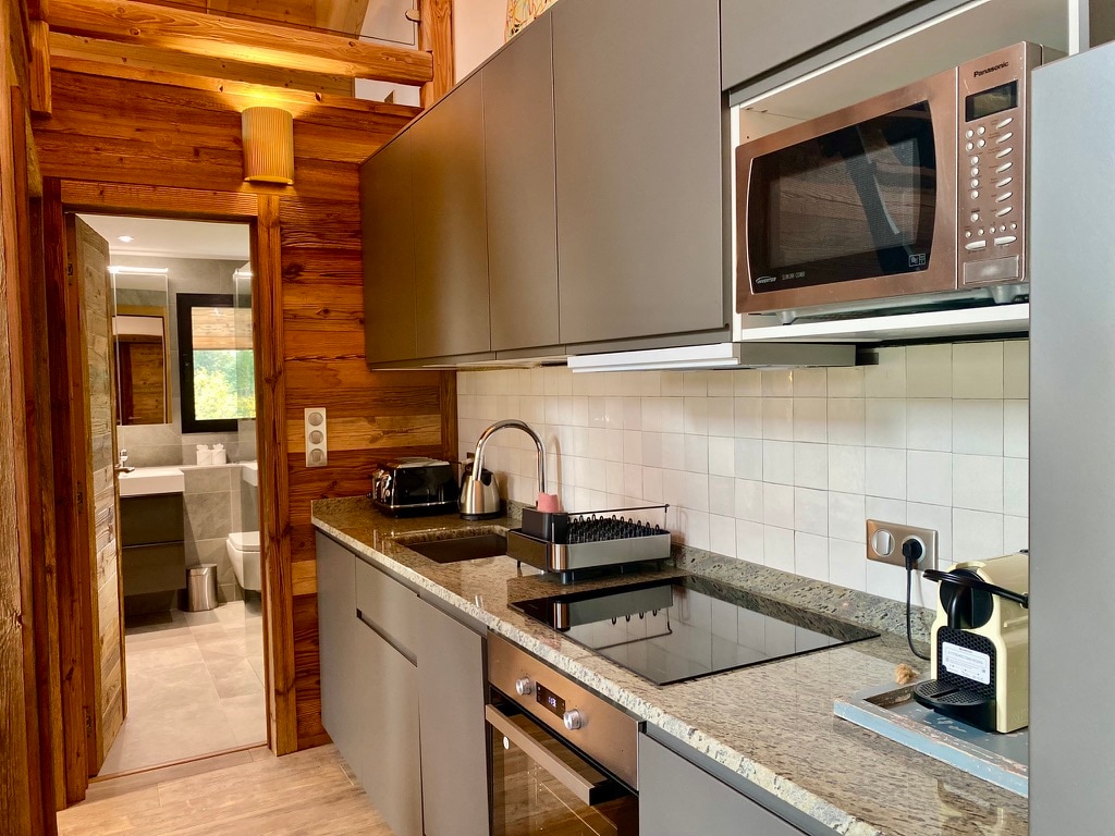 A recently refurbished apartment (summer 2024) with stunning views over the valley. The property is located in the basement of a family chalet in a traditional Haute Savoie village 4km from the centre of Morzine and 8km from the centre of Les Gets. The tranquil village of Essert Romand has a bus service to Morzine and the ski areas, as well as the fabulous La Petite Auberge Bar/Restaurant within walking distance.