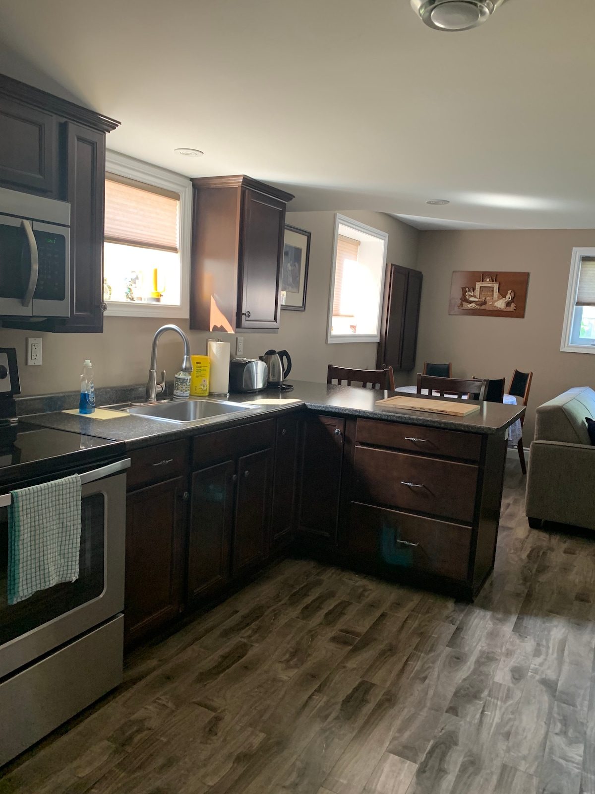 Bienvenido a nuestro apartamento de nivel inferior aislado y privado que da a un bosque. Una familia de ciervos visita con frecuencia el patio trasero. Nos esforzamos por hacer que los huéspedes se sientan como en casa con una decoración de buen gusto y servicios bien pensados. La suite es especialmente adecuada para viajeros de negocios y familias pequeñas. La ubicación es céntrica, a 3, 6 y 8 minutos en coche de la tienda de comestibles, Walmart y el puente Ambassador. * Estamos en Canadá. Tienes una planta totalmente privada para ti, pero esta no es la casa completa, vivimos arriba.