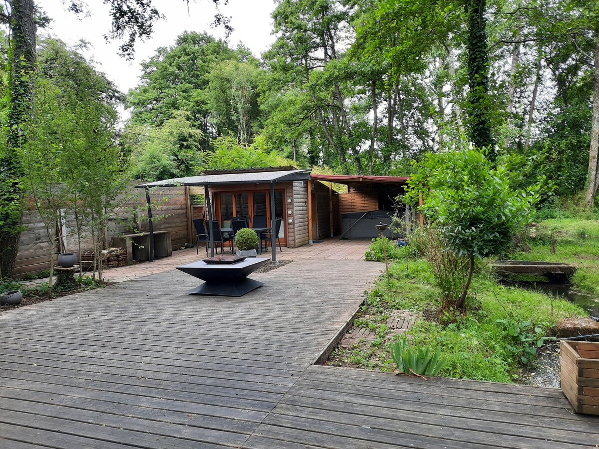 ** pour toute RÉSERVATION merci de vous rediriger vers notre nouvelle annonce : airbnb.fr/h/babethandserge cette annonce est maintenue en ligne pour l historique des avis Charmante maison entièrement rénovée, offrant confort et intimité. Garage sécurisé pour vélos. Sur 1 ha de nature avec ruisseau, bambous, chêne centenaire et terrasse ensoleillée, lieu idéal pour familles, amis ou télétravail (fibre). À proximité : golf, escalade, VTT, kayak, accrobranches, tyrolienne.
