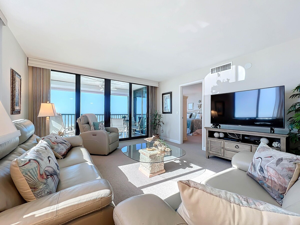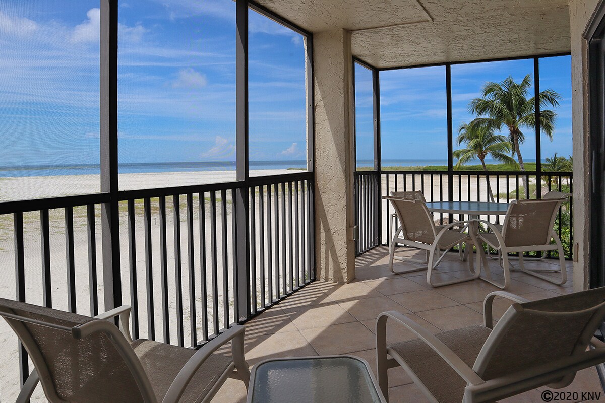 ¡Somos Superanfitriones por una buena razón! ¡La siesta de Sanibel se ve increíble! Inmaculada frente a la playa, 2BR, 2BA con garaje, unidad de playa muy bien actualizada en el borde de la arena. ¡Vistas increíbles del Golfo con calificaciones de 5 estrellas! Mínimo de 3 días. ¡nuevas ventanas DE huracanes, recién pintadas con ASCENSOR EN EL EDIFICIO! Descuento para alquileres semanales/meses. BR 1: cama king, en la habitación, TV inteligente. BR 2: 2 camas individuales, TV inteligente. Sofá cama Qn. en LR. Piscina, campo de golf, bicicletas, lavandería en el lugar. No hay alimentos ni condimentos almacenados en la unidad. Puede permitir perros pequeños.