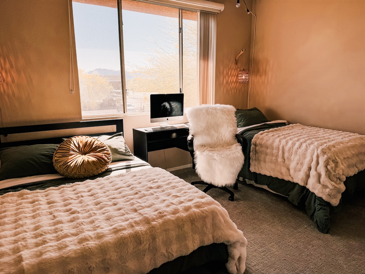 A 2 manzanas de South Lake. Más de 33 millas de senderos para practicar senderismo, caminatas, ciclismo de montaña y golf. Nada en una piscina privada climatizada, sin ningún coste adicional. Relájate y desconecta en este alojamiento tranquilo y elegante. Una casa bien cuidada con un espacio de trabajo designado, mejor que alojarse en un hotel. No se permite fumar ni mascotas. * A 5 minutos de Safeway y Walgreens. * A 35 minutos del aeropuerto de Phoenix Sky Harbor. * A 25 minutos de los estadios de la NHL y la NFL. * A 30 minutos de los estadios de la NBA y la MLB. * A 15 minutos del Phoenix International Raceway.