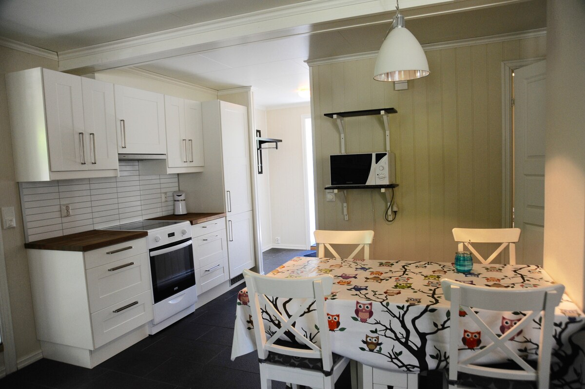 Lugar moderno y tranquilo, que tiene una ubicación céntrica. Casa adosada ubicada en el centro de Etne con espacio para una familia. Dos dormitorios, uno con 180 camas y otro con 150 camas. Dos baños grandes, con acceso a lavadora, secadora y ducha. Amplia terraza y posibilidad de alojarse alrededor de la casa.