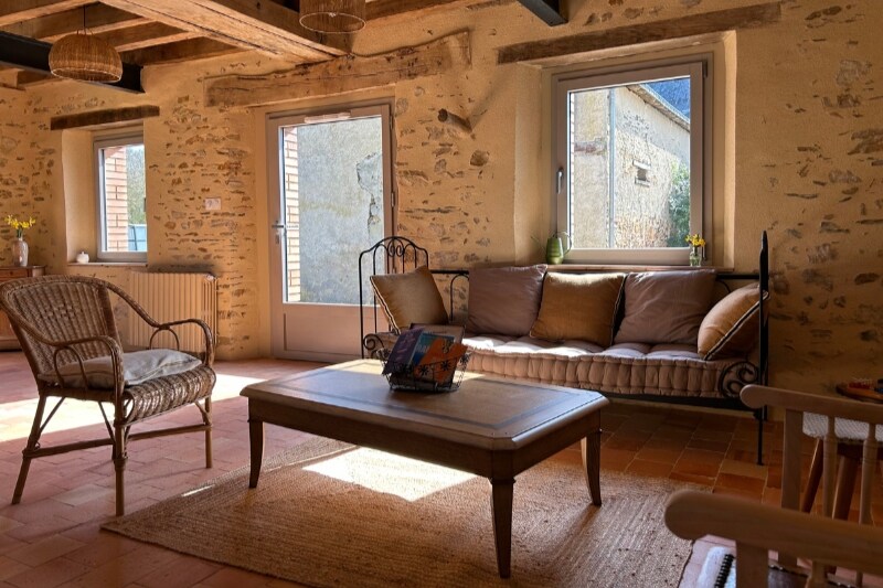 Entre Le Mans y Angers, el Domaine des Fontaines le da la bienvenida a su casa rural «Le Cocon». Recién reformada, esta antigua casa de campo con todas las comodidades de 60 m² le da la bienvenida para sus escapadas, vacaciones en el campo, retiro y teletrabajo en la naturaleza o trabajo en la región. Le Cocon le ofrece dos cómodas habitaciones, una sala de estar-cocina abierta a una terraza verde y con vistas al Parque de las Fuentes, que consta de un jardín de rosas, un laberinto vegetal, un estanque y bosques.