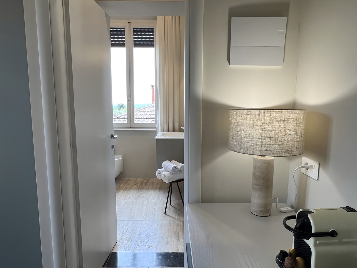 Sumérgete en el confort refinado de nuestra elegante habitación en San Prospero Heritage. Disfruta de una habitación amplia y luminosa con una cama tamaño king, muebles de diseño y un lujoso baño de travertino. Mantente conectado con wifi rápido, relájate con Netflix en un televisor inteligente y disfruta de un registro de entrada autónomo sin problemas. Ubicado en un encantador edificio de estilo Liberty, a solo un paseo panorámico del centro histórico de Siena. Muchas opciones de aparcamiento justo delante del hotel. Segundo piso sin ascensor