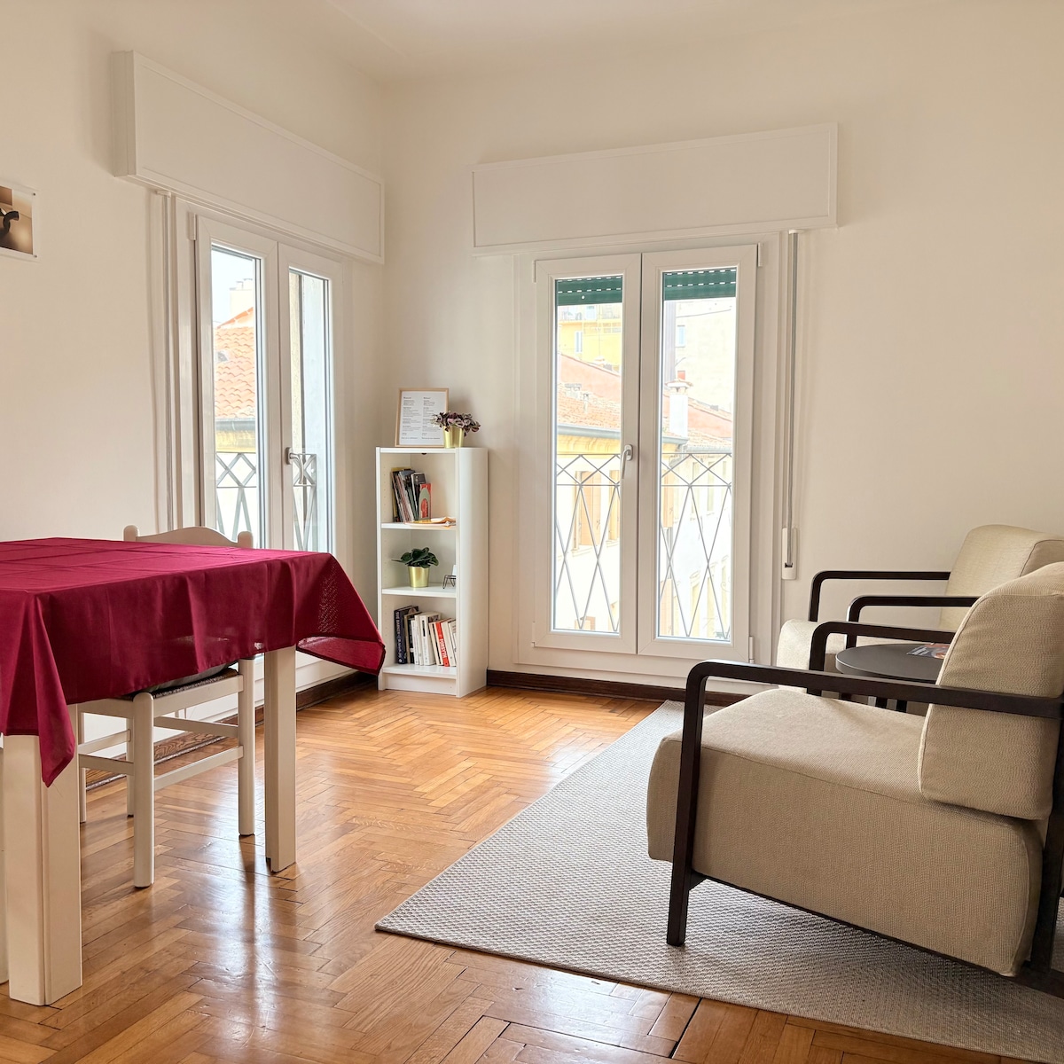 Encantador y cómodo apartamento en el centro de Padua, ciudad rica en arte y cultura y cerca de Venecia. En una ubicación práctica, cerca del centro histórico, transporte público y Fiera Campionaria. Alojamiento acogedor y luminoso, en el cuarto y último piso de un edificio, equipado con ascensor; desde la terraza cubierta, la vista se extiende hasta las colinas Euganeas. Ambiente íntimo y cuidado de los espacios interiores y de la logia. Adecuado para parejas, familias, viajeros de negocios y grupos de amigos.