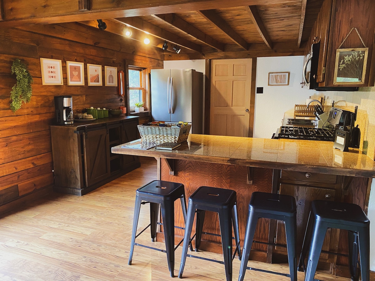 El Sassafrass Silo empezó su vida como un silo de grano que Mike encontró en una granja en Kansas. ¡Sentimos que le quedaba más vida, así que la llevamos del campo al bosque y le dimos un nuevo propósito! Su nuevo viaje se basa en la historia familiar de Debbie de la hermosa Natchez, Mississippi. Sus recuerdos de servir en la Peregrinación con su propia falda de aro y el encanto clásico de las casas de antes de la guerra, junto con su amor por el estilo bohemio, la naturaleza y el lago, ayudaron a crear este espacio único.