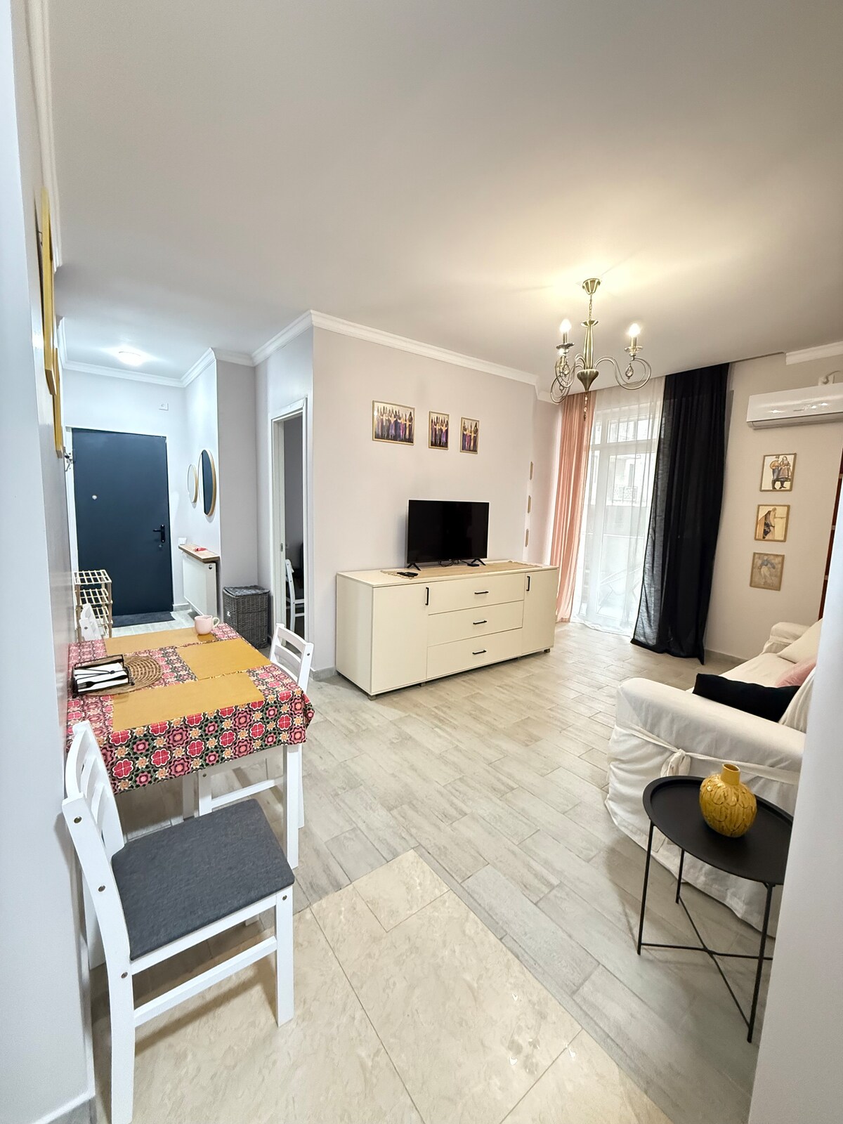 ¡Te va a gustar este nuevo departamento! La sensación de comodidad y frescura es proporcionada por el interior de estilo marino y mucha luz natural. Un octavo piso significa una hermosa vista de la ciudad, el bulevar y el mar. Tendrás todos los lugares turísticos, tiendas y restaurantes muy cerca. Es tranquilo y agradable aquí, ¡lugar perfecto para relajarse!