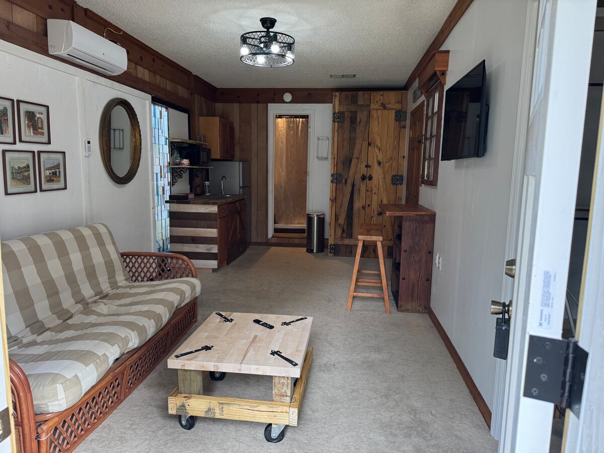 Ubicado hacia el final de una calle sin tráfico, este antiguo estudio de arte convertido en Airbnb, se encuentra en una propiedad rural compartida de 3 acres, ubicada en una calzada de tierra llena de baches en un entorno boscoso. La entrada es entre las 15:00 y las 23:00 EST. No permitimos registros de entrada después de las 23:00. Esta propiedad no es adecuada para personas con problemas de movilidad o que no se mantengan bien en pie. No se permite fumar, cigarrillos electrónicos o vapear en la cabaña o en la propiedad.
