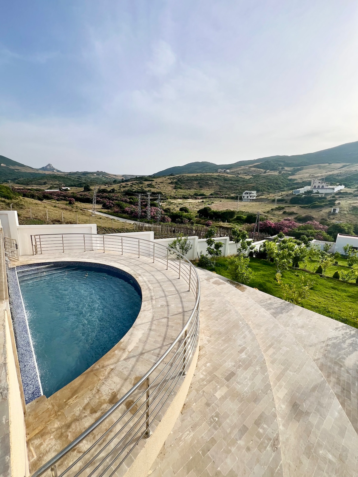 Hermosa villa , en posición dominante con vistas al mar de cuento de hadas. playa a 950 m a pie La villa tiene 300 m2 habitables. Tiene capacidad para 6 adultos y 2 niños . Tiene 5 habitaciones . En la sala de juegos hay un sofá cama convertible en cama supletoria para 2 personas adicionales. Piscina privada con terraza y parrilla de gas. Hammam beldi La casa está climatizada y segura con cámara y alarma. Diviértete y relájate con toda tu familia o amigos