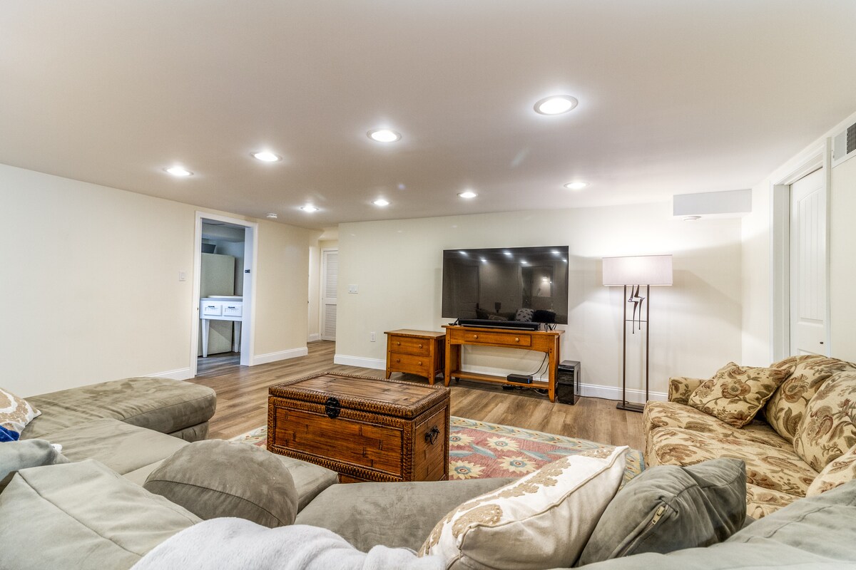 Si buscas un lugar acogedor para relajarte en un pequeño pueblo, con internet rápido y fácil acceso a muchas actividades divertidas, ¡esta casa es ideal! En la planta principal de la casa hay un diseño abierto que incluye una biblioteca, un pequeño bar, un comedor, una cocina, un baño y dos dormitorios. En la planta baja hay un sótano terminado que incluye una gran área familiar con un sofá enorme (perfecto para películas), un espacio de trabajo y un espacio de lavandería. Aparcamiento privado y mucho espacio al aire libre.