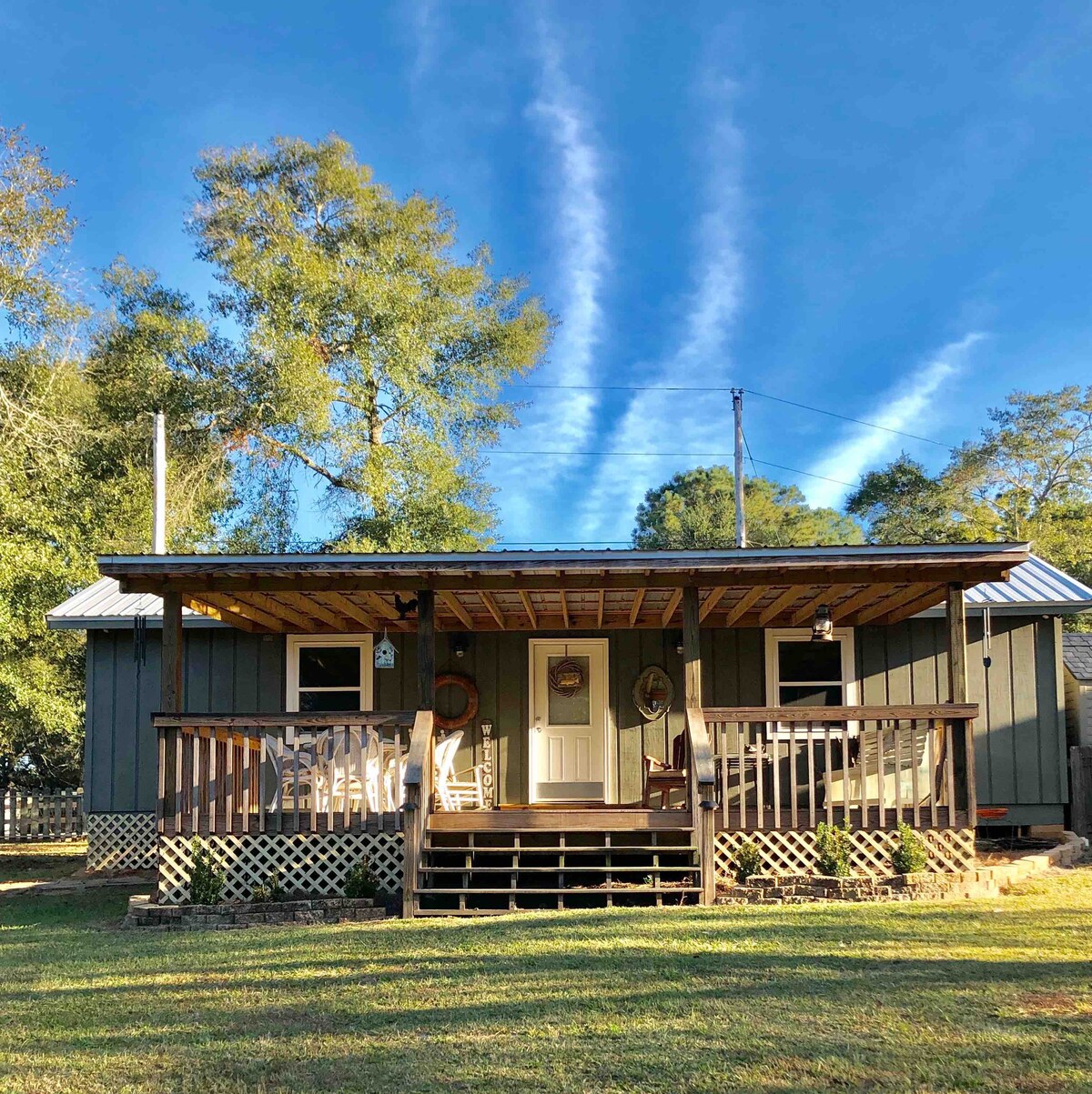 Estamos alquilando nuestra casa de campo recién remodelada en nuestra propiedad. 2 dormitorios, 1 baño. Hay una cama tamaño queen en cada dormitorio. Nuestra casa de campo tiene una cocina completa y 2 porches separados para sentarse y relajarse. Se permite un perro siempre y cuando se porte bien, esté domesticado y sea pequeño. Estamos a una manzana de Fish River, por lo que los barcos, cañas de pescar, kayaks y bicicletas son geniales para la zona. Cerca del centro de Fairhope. A poca distancia en coche de las playas.