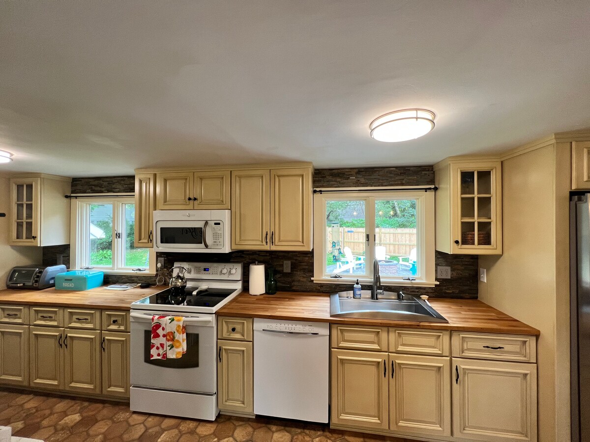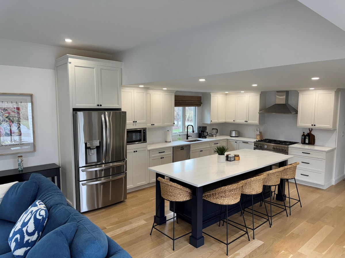 Esta es una casa de campo de dos dormitorios completamente reformada. Tres televisores inteligentes de pantalla plana. Wifi. Azulejos por todas partes. Esta unidad es llave en mano y está totalmente equipada. Hay una sala de estar exterior, un amplio patio trasero privado que incluye una parrilla de gas. La cocina está bien equipada e incluye salpicadero de azulejos, electrodomésticos de acero inoxidable, encimeras de cuarzo y mucho más. Estamos a media manzana de la calle principal, a dos manzanas del puerto y de los transbordadores de Martha's Vineyard. También estamos a menos de una milla del mar.