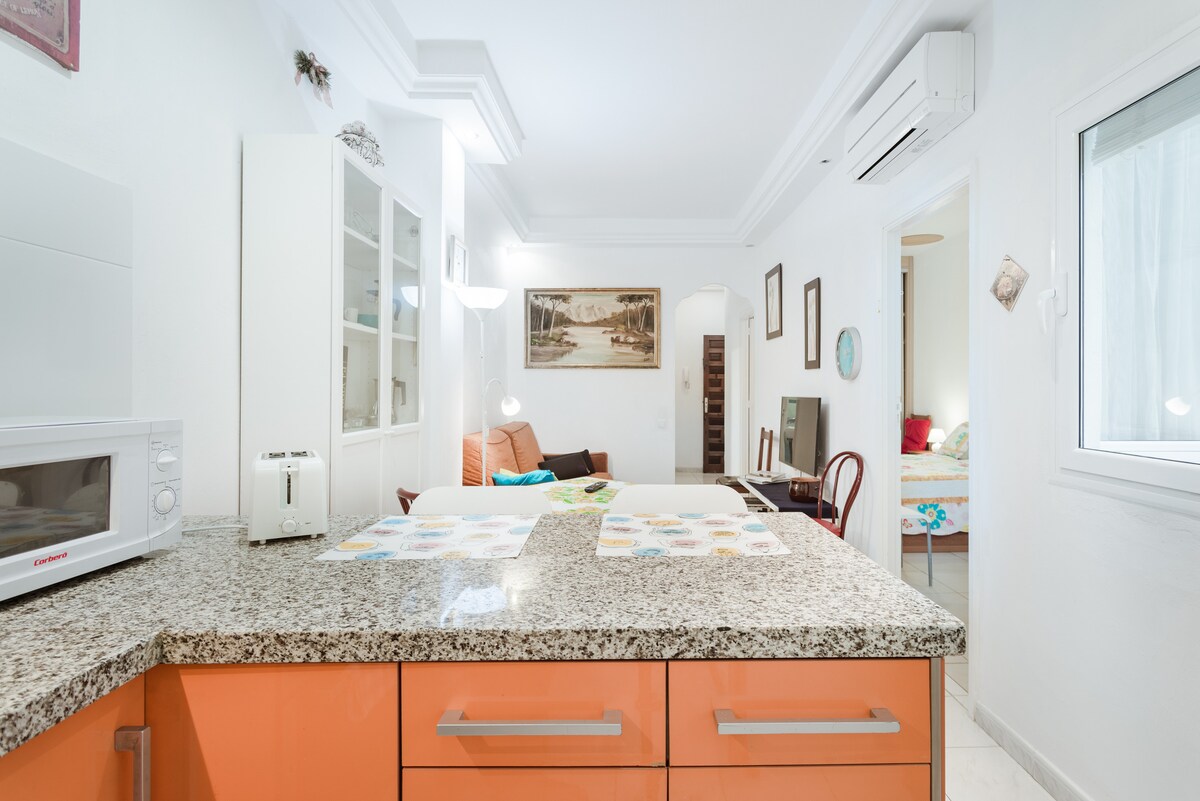 Un precioso apartamento de diseño, recientemente renovado con con impresionantes vistas de atardecer sobre el Océano desde su terraza. Primera línea al mar. Después de un largo día en la naturaleza, descansa en la cama King size (180x200cm) ----- A lovely apartment recently renovated with stunning views of the sunset, first line over the ocean from the terrace. Relax while reading, eating, or doing yoga. After a long day in nature, rest on the King size bed (180x200cm)