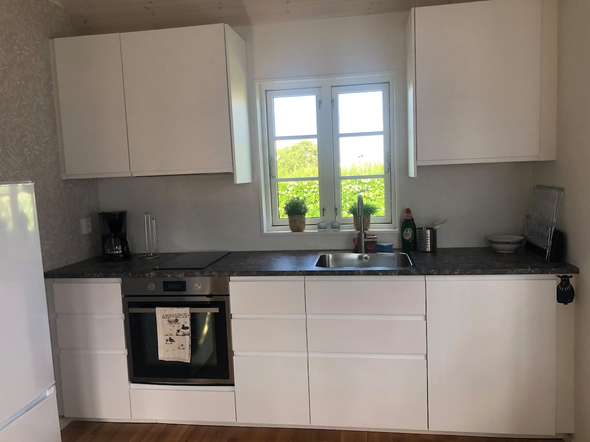 Bienvenido a nuestra casa de ensueño de 110 metros cuadrados diseñada por arquitectos. La casa se divide en tres dormitorios, un invernadero, baño, cocina, comedor y sala de estar en el ático. Desde el ático también se puede salir a la terraza, que tiene una amplia vista del mar Báltico. El invernadero acristalado es el enlace entre la sala de estar y la zona de los dormitorios. Aquí puedes sentarte y mirar las estrellas o encender un fuego en la estufa. El baño tiene una bañera de piedra caliza. Bungenäs es una zona única sin coches, con aparcamiento a 800 m de la casa.