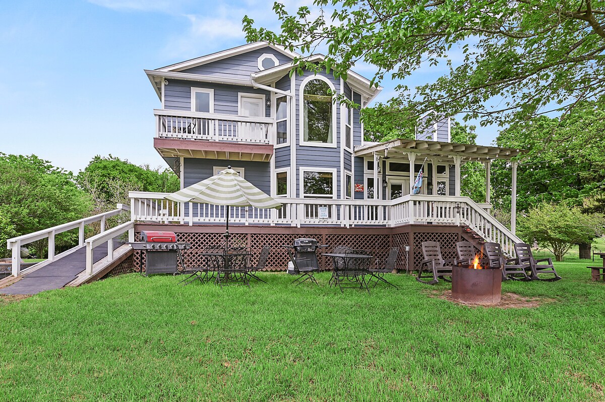 ¡Casa de campo en el lago en Schulle Farms! Descubre el epítome de la tranquilidad junto al lago en nuestra encantadora casa de campo Round Top, ubicada a lo largo de un pintoresco lago. Este idílico refugio ofrece una mezcla perfecta de encanto rústico y comodidad moderna, que te invita a relajarte y volver a conectarte con la naturaleza.