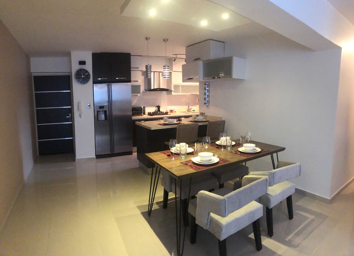 Escapada perfecta para dos Disfruta de un espacio moderno y acogedor pensado para parejas. Nuestro alojamiento cuenta con cómoda cama queen, baño y medio para mayor confort, y cocina totalmente equipada para que prepares tus comidas favoritas. Ubicado en una excelente zona, cerca de restaurantes, tiendas y principales atracciones, podrás moverte fácilmente y aprovechar al máximo tu estadía. Ideal para una escapada romántica, un fin de semana de relax o una visita de negocios con estilo.