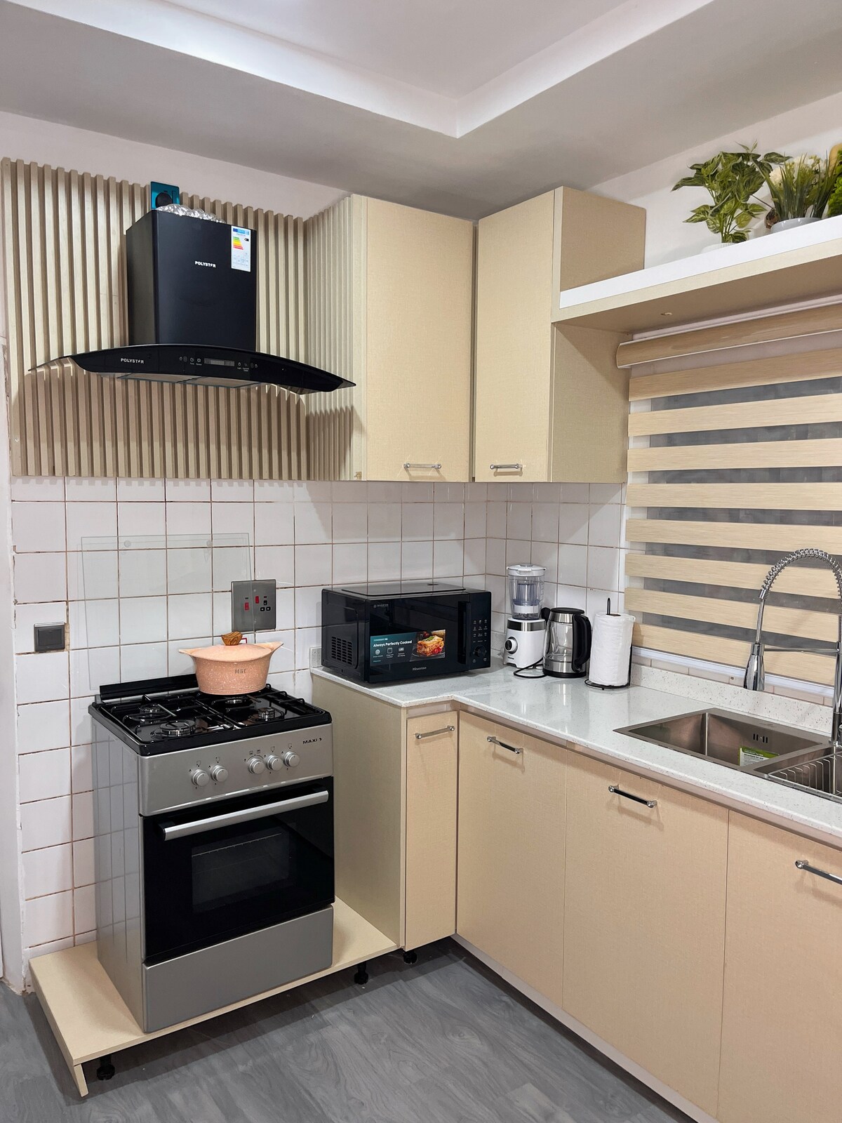 Este anuncio es un apartamento de un dormitorio céntrico y terminado con buen gusto para garantizar una estancia cómoda. El apartamento está equipado con energía de respaldo para garantizar la fuente de alimentación las 24 horas, los 7 días de la semana, limpieza diaria, wifi, cocina totalmente equipada y un espacio de trabajo dedicado. El apartamento tiene una ubicación céntrica y es fácil acceder a los principales restaurantes, mercados, centros comerciales y la zona central de Abuja con un tiempo de ruta muy corto.