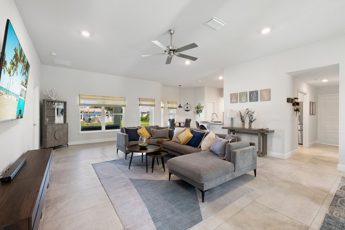 Relájate con toda la familia en este tranquilo lugar para alojarse. A 15 minutos de la playa, a 5 minutos de la orilla del río. A una hora de Disney y del aeropuerto de Orlando. Hermosa y única. Dos dormitorios grandes y dos baños. Una habitación cerrada de Florida con aire acondicionado y una cama de día. Puede dormir cómodamente 5. Cocina con encimeras de cuarzo y electrodomésticos de calidad profesional. 4 taburetes de bar alrededor de la isla de la encimera. Comedor abierto con capacidad para 4 personas. Garaje de dos plazas con lavadora y secadora.