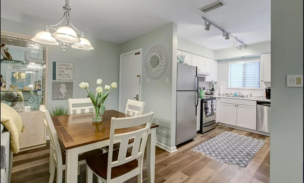 Nuestro tranquilo refugio en la playa, perfecto para estancias prolongadas y cortas. A solo 5 minutos a pie de la playa Fernandina. Los restaurantes cercanos son una invitación, y las compras en Walmart y Harris Teeter están a poca distancia en coche. Relájate con colores inspirados en la playa, donde reina la comodidad. Nuestra acogedora morada de 2 dormitorios y 1 baño (camas KING y queen) ofrece un amplio espacio con cocina totalmente equipada para un máximo de 4 personas. ¡Las comodidades incluyen piscina, pista de tenis y parque infantil! Sillas de playa, sombrilla y carrito de playa incluidos en la unidad. <3 ^^