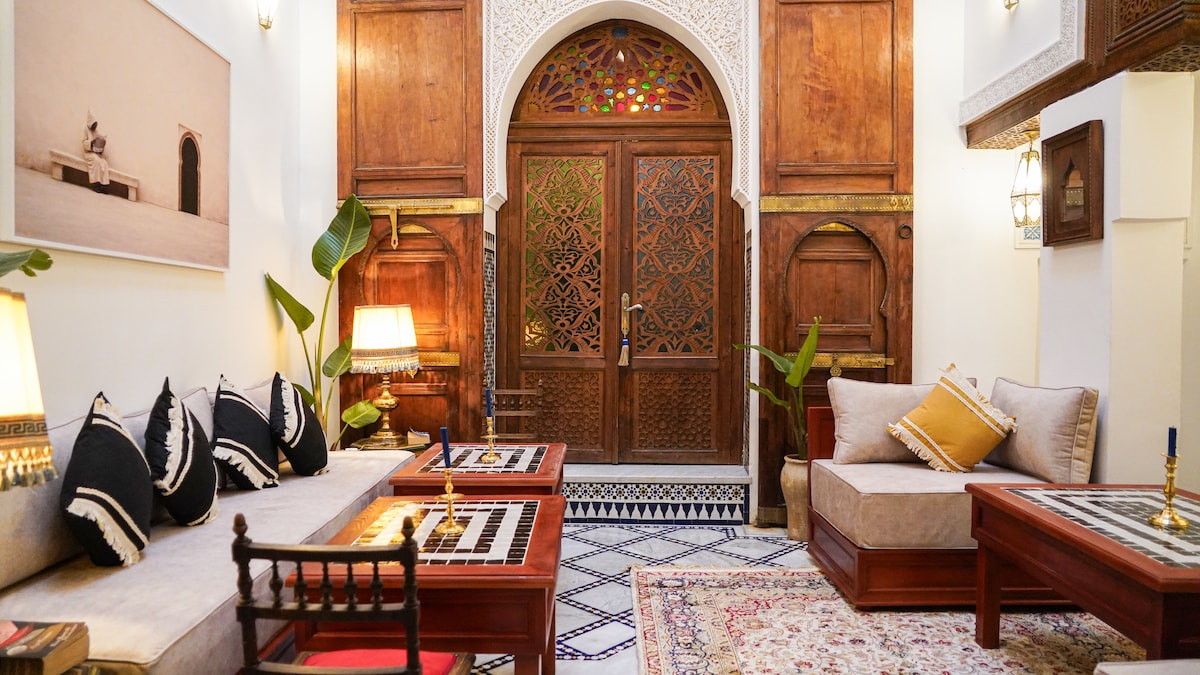 Step through an unmarked wooden door in a quiet medina alley, and you enter a different world. Dar Houdou is a traditional Fassi house that has been painstakingly restored by hand using the same craftsmen and techniques that built the original medina over a thousand years ago. It is not a hotel. It is a home, and staying here feels like one.
