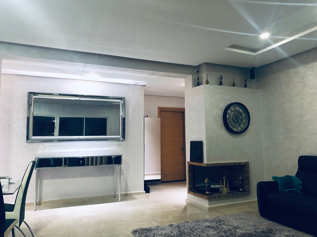 Apartamento situado en el corazón de Fez con impresionantes vistas al parque amueblado con mucho gusto y totalmente equipado para una estancia memorable. Se compone de: - 2 dormitorios con ropa de cama cómoda - 2 baños - un comedor - una sala de estar con pantalla de TV - una cocina equipada (horno, nevera, microondas, cocina de 4 fuegos ... ) - un balcón para tomar el aire con vistas Este apartamento está destinado a parejas marroquíes casadas , familias y turistas extranjeros.