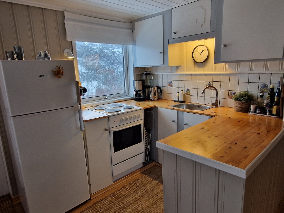 Estamos ubicados en medio de las hermosas áreas naturales «Vestheie» y «Austheie». Vivirás en una granja que tiene pollos y cabras. El apartamento forma parte del cobertizo, completamente aislado y renovado. Cuenta con un dormitorio, sala de estar + cocina abierta y baño. En verano hay una gran mesa de picnic disponible en el exterior. Es el alojamiento perfecto para familias. Hay muchas caminatas para familias, pero también rutas de escalada, natación y posibilidades de pesca en la zona.