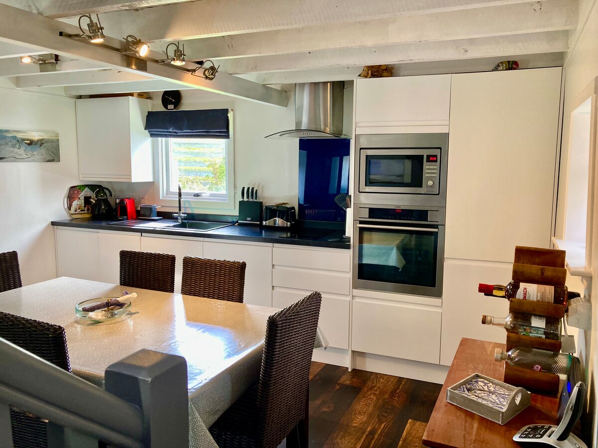 Casa rural sin gastos de construcción construida este año en el centro de Findhorn, ¡ahora disponible para reservas!Esta casa de campo independiente ha sido construida al estilo tradicional de las casas de campo de Findhorn en el exterior con un interior moderno, elegante y acogedor. Cama tamaño king, sábanas de algodón egipcio, estufa de leña, cocina grande, calefacción por suelo radiante. Esta casa de campo ha sido diseñada y construida pensando en un refugio acogedor y relajante. Ubicada en el corazón de Findhorn, a tiro de piedra de la playa y de las tiendas.