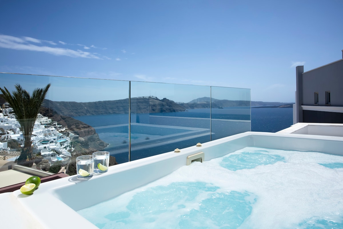 Villa del capitán ArmonOia con bañera al aire libre y vistas a la caldera