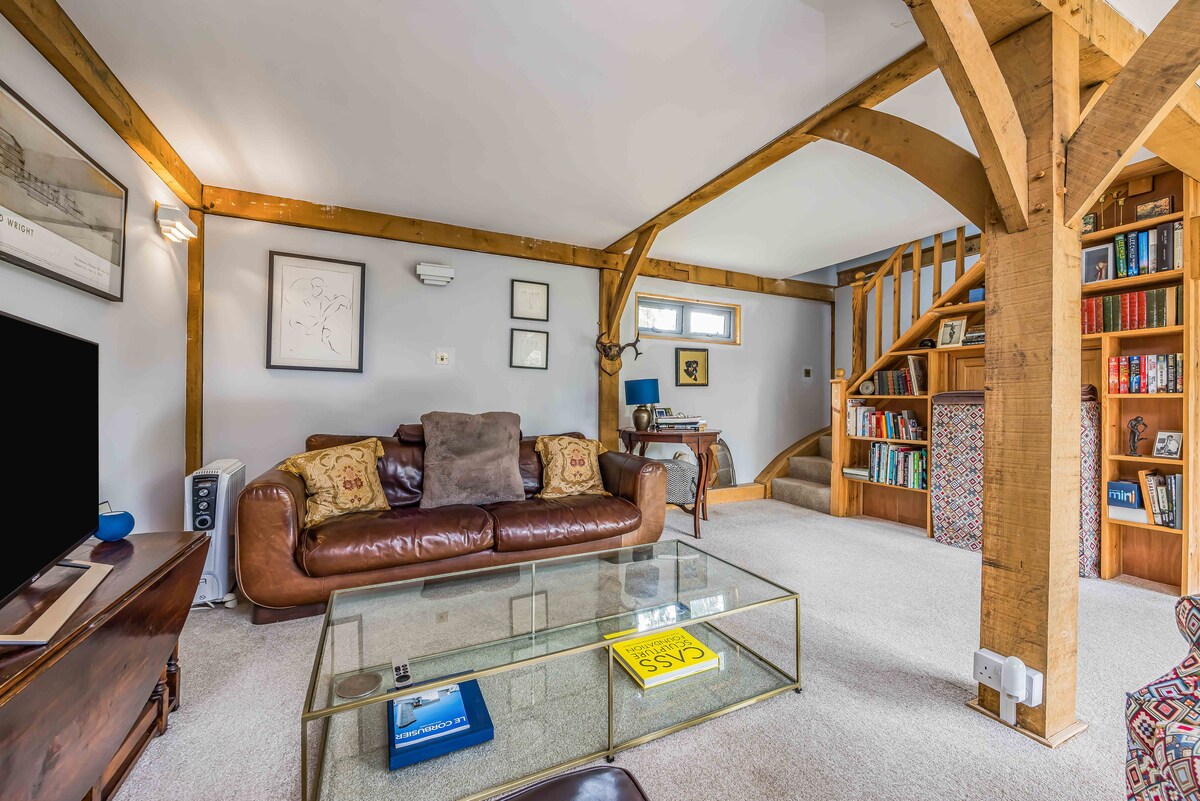 Little Barn es un granero independiente, acogedor y compacto, situado en los terrenos de una casa de campo cerca de Chichester. Tiene capacidad para 4 personas. Little Barn tiene una cocina de planta abierta bien equipada, sala de estar y comedor con estufa de leña, baño moderno, TV y wifi. Acurrúcate y observa los patos, cisnes y gansos en el estanque y la manada de ciervos salvajes que pastan cerca.