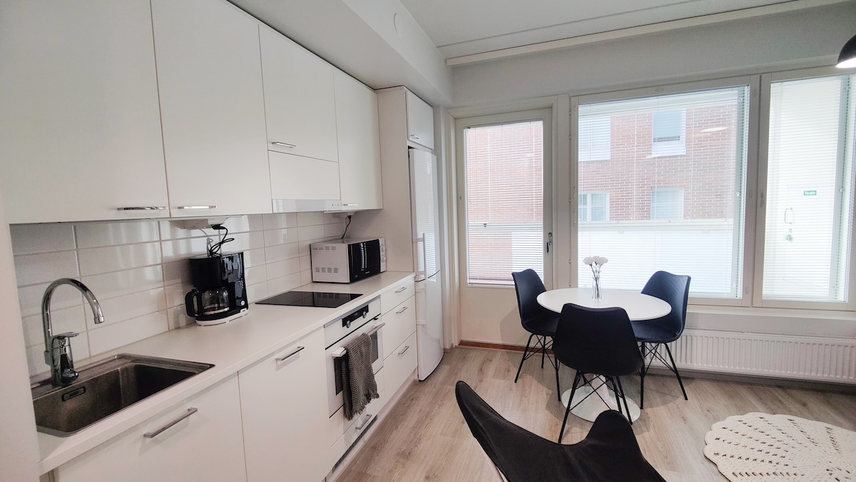 Apartamento nuevo con la mejor ubicación en Tikkurila. Llegada autónoma A solo 250 metros de la estación de trenes de Tikkurila. Conexión en tren a 15 minutos del centro de Helsinki y a 10 minutos del aeropuerto. Rodeado de supermercados, cafeterías, restaurantes, etc. Wifi gratis. Cafetera de cápsulas con café de cortesía. Cocina totalmente equipada. Luces atenuables. Estudio moderno y elegante con todo lo necesario.