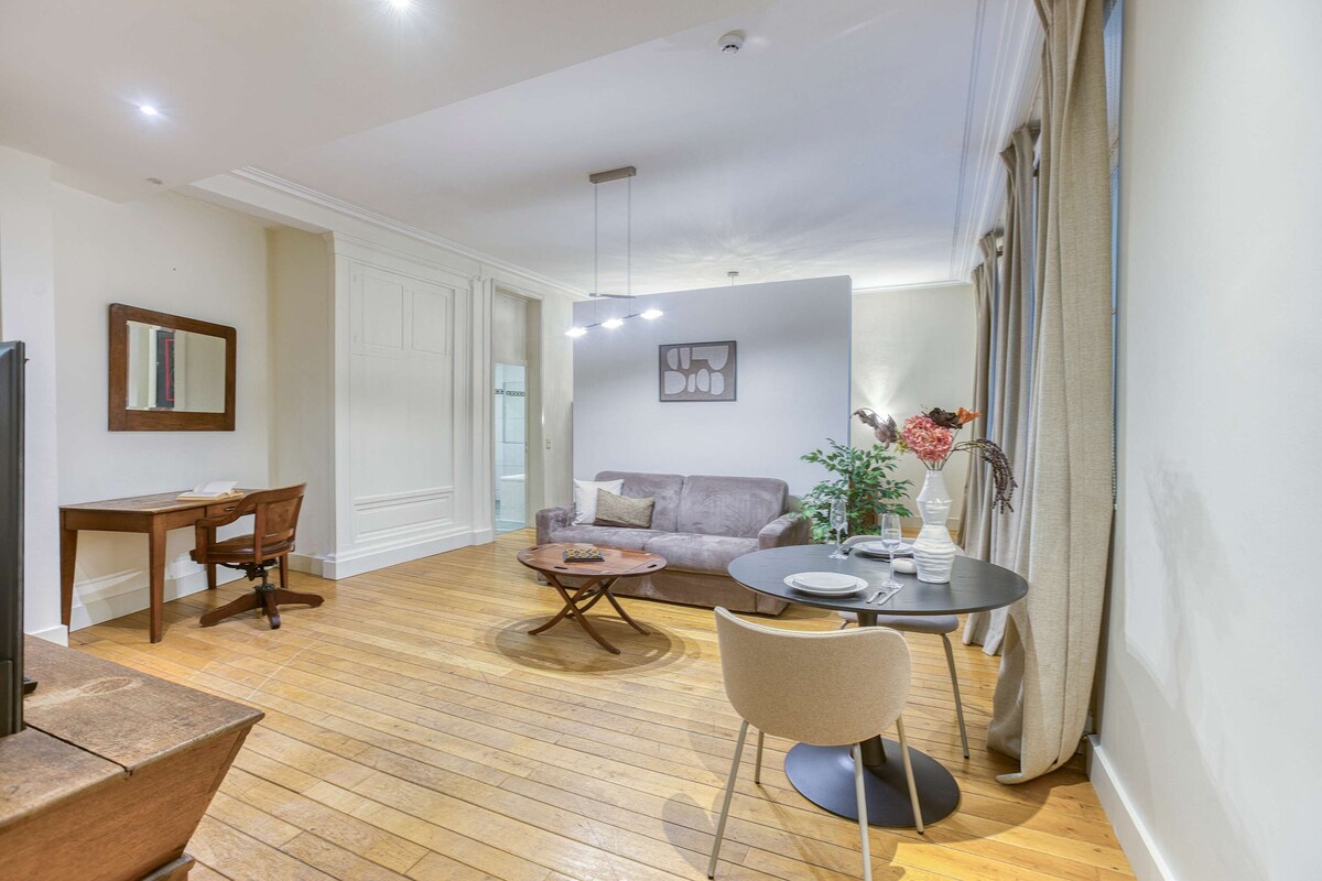Lujoso apartamento tipo suite (60 m²), bañado por la luz gracias a sus numerosas ventanas del suelo al techo que proporcionan una conexión directa con la vida urbana de «Het Zuid». Este apartamento tiene una cocina abierta totalmente equipada, en combinación con un acogedor comedor y una sala de estar completa + 1 amplio dormitorio de lujo con una cama con somier, un televisor y armarios + 1 baño con ducha a ras de suelo y un lavabo + 1 aseo separado Sud d'Anvers está situado en el centro del ecléctico y creativo distrito de «Het Zuid».
