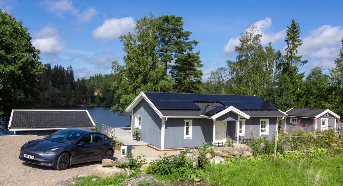 Relájate en esta casa única y apta para familias con su propia sauna, bañera de hidromasaje y alrededores pintorescos. A 20 minutos del aeropuerto Landvetter, a 45 minutos de Gotemburgo, a 25 minutos de Borås y a 45 minutos de Alingsås, se ofrecen muchas excursiones. Disfruta de la despensa en la fina de los bosques de bayas y setas. Pesca en el lago con el pequeño eco o meta directamente desde el embarcadero. Saluda a las vacas, los caballos y las ovejas de los jardines circundantes. Corre o camina por cualquiera de los senderos marcados.