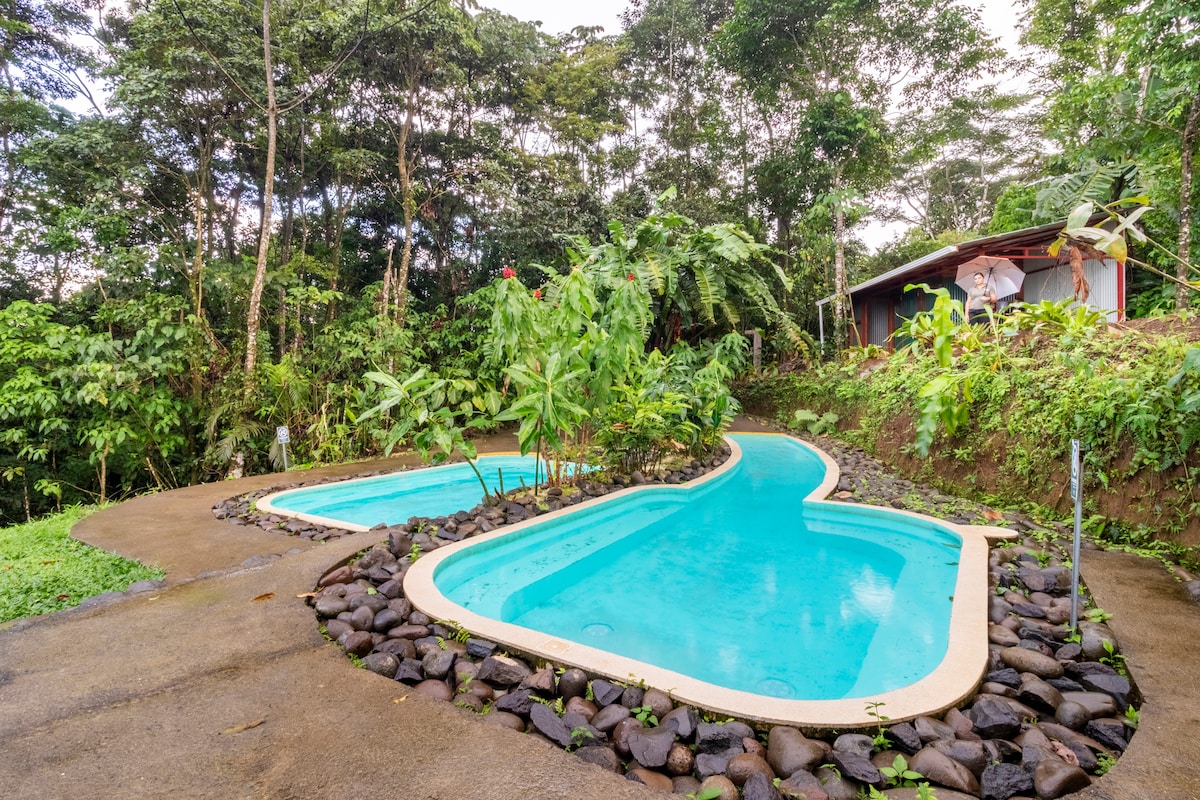 Ubicado en medio de una exuberante selva tropical. Siéntete como en casa en nuestros espaciosos santuarios, donde las ventanas del suelo al techo difuminan las líneas entre el interior y el exterior, abrazándote en el cálido abrazo de la naturaleza. Disfruta de nuestra piscina natural, relájate en nuestro jacuzzi, encuentra el zen en nuestro espacio de yoga y saborea las delicias de la barbacoa en nuestra zona de cabañas cubiertas al aire libre. Deshazte del estrés en medio de la tranquilidad de la selva tropical y experimenta la esencia de la pura vida con nosotros, la relajación, la aventura y la conexión te esperan.