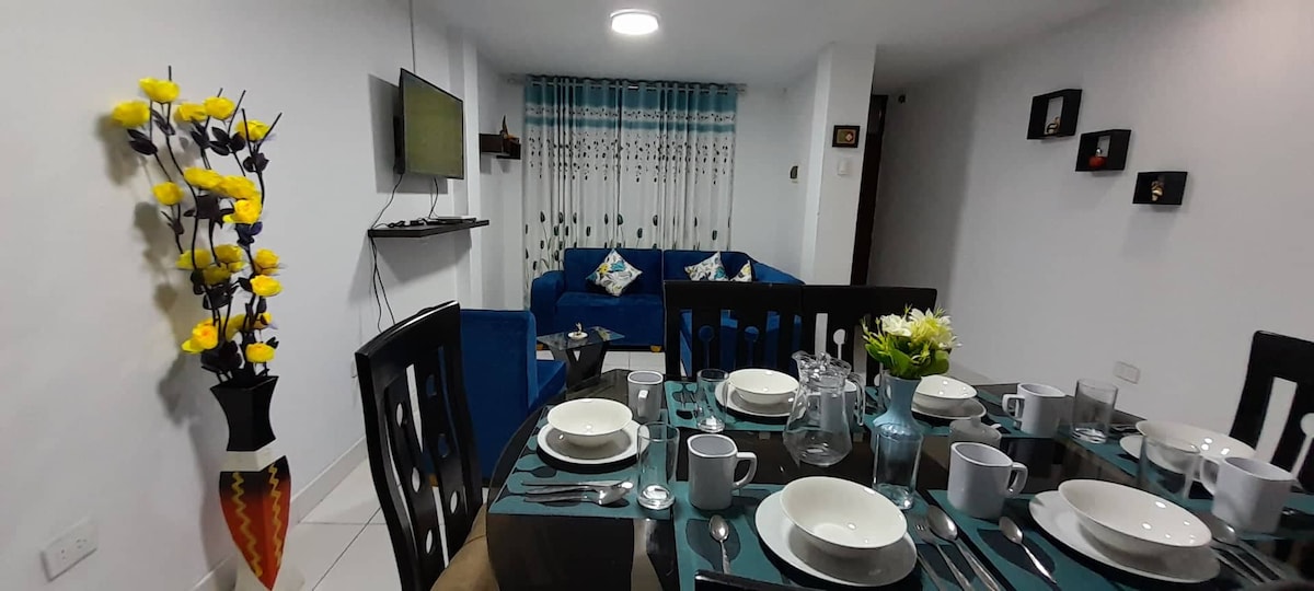 Departamento ubicado en Covicorti, cerca al Mall Plaza, acondicionado hasta para 5 huéspedes. El edificio es familiar, tranquilo y céntrico. El dpt tiene un diseño moderno que te envolverá en comodidad y funcionalidad, cuenta con: - 1 habitación con una cama de 2 plazas. - 1 habitación con un camarote de 1.5 plazas. - 1 sofá cama. - 1 baño completo. - Cocina equipada, ropa de cama, y mucho más.... ¡Sean bienvenidos! Haremos todo lo posible para que su estadía sea exitosa y placentera.