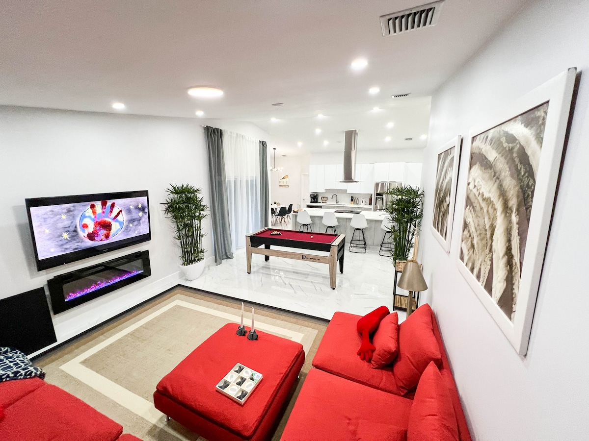 Disfruta de la mejor experiencia de escapada en este refugio costero meticulosamente renovado de 4 dormitorios, 2 baños y piscina climatizada. Situado a poca distancia a pie de la emoción de The Casino@Dania Beach, cerca del resplandeciente océano Atlántico, el vibrante Hollywood Beach Broadwalk, Young Circle y el Aeropuerto Internacional de Fort Lauderdale. Con un amplio espacio para familias o grupos de amigos, que incluye una cocina totalmente equipada y cómodas salas de estar, mi casa ofrece todo lo que necesitas para unas vacaciones inolvidables.