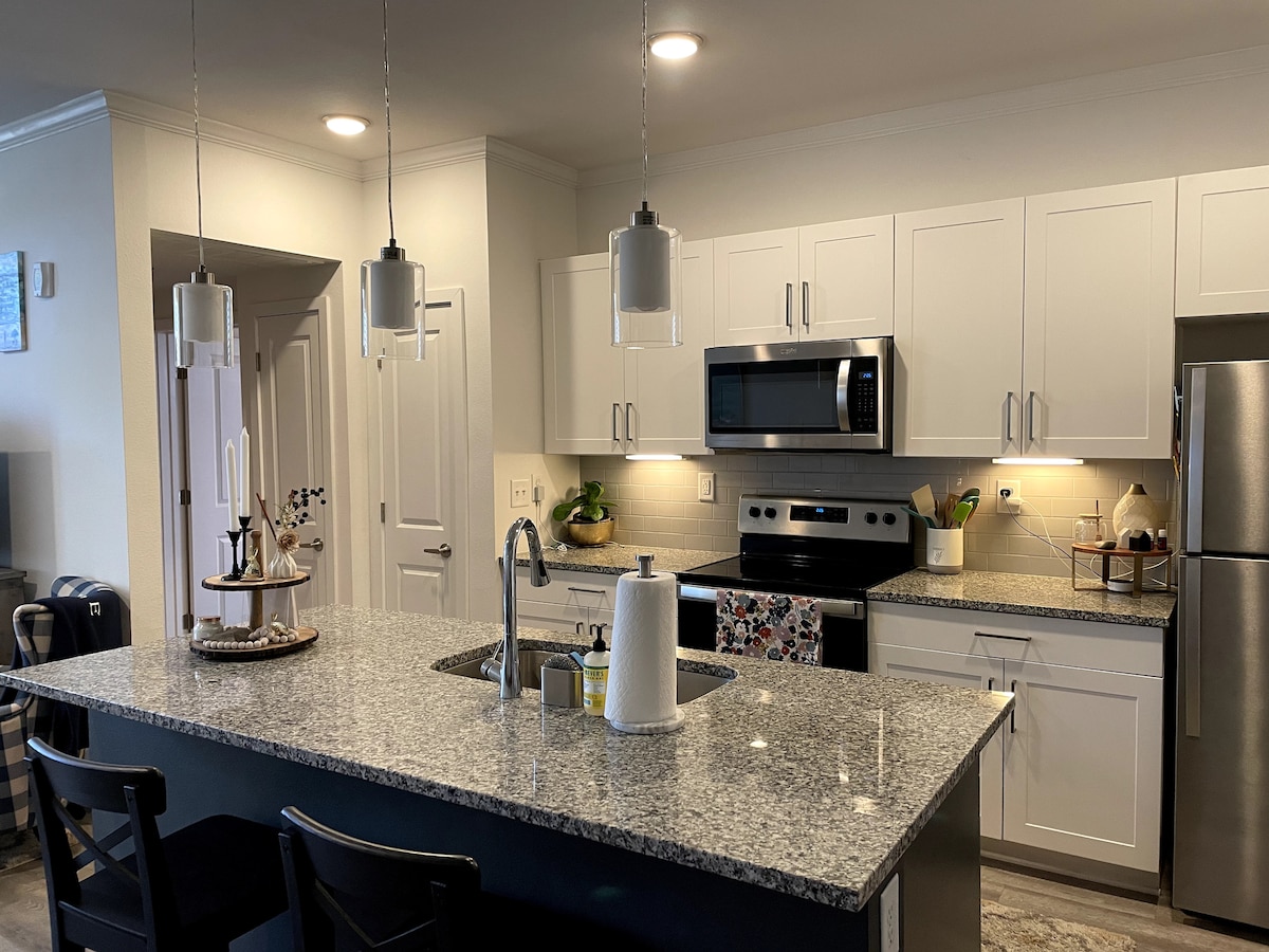 Te damos la bienvenida a The Pilots Den. EL ANFITRIÓN PAGA LAS TARIFAS POR SERVICIO Cuidadosamente diseñado para que todos los espacios estén acostumbrados a su máximo potencial. Los espacios abiertos y modernos y compartidos de la sala de estar y la cocina tienen suficiente espacio para entretener a 2-4 huéspedes. Los toques lujosos y retro y los diseños acogedores aportan esta maravillosa estancia a la vida. Esta suite de invitados viene totalmente equipada, la cocina pequeña tiene una cafetera/sartén/horno tostador y máquina de hielo. Las amenidades adicionales incluyen: nevera con congelador, waffle maker, licuadora y altavoz bluetooth en el baño.