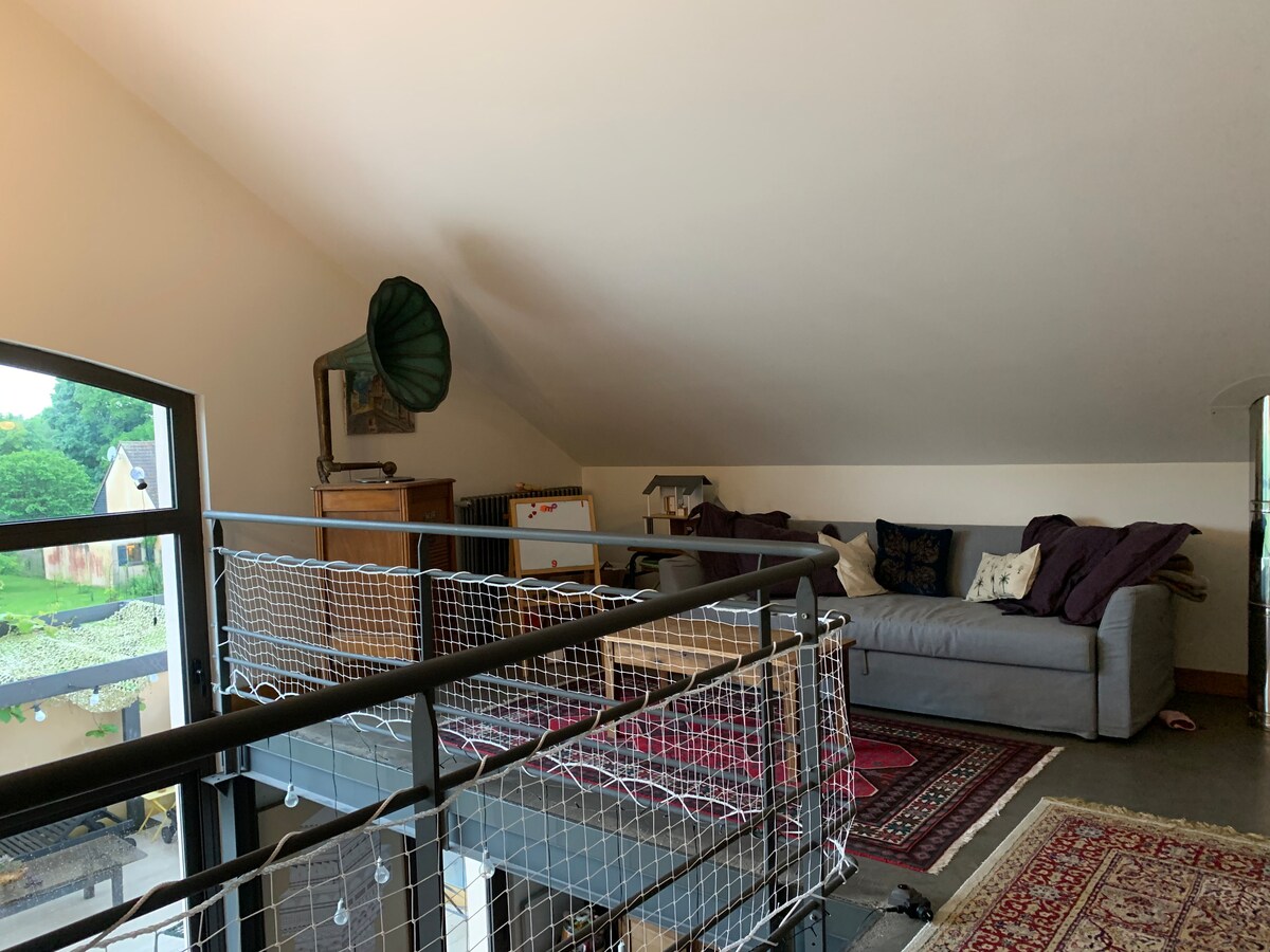 Nuestra casa es una casa antigua con el encanto de las piedras y las vigas. No es perfecta, pero se vive bien. Como tiene hijos, tiene todo para recibir a niños y bebés (cuna, hamaca, trona, cambiador, etc.) Está situada en una pequeña aldea muy tranquila. Si toma el camino detrás de la casa, se encuentra en el bosque, ideal para paseos a pie o en bicicleta. Dejamos a disposición un gran número de bicicletas de todos los tamaños.