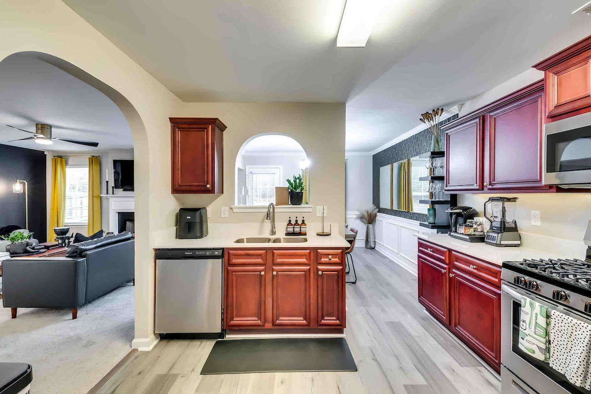 La puerta roja de Dot está decorada con un toque elegante de granja. Tiene una ubicación céntrica a pocos pasos del centro de Hapeville, a 7 minutos del aeropuerto ATL y a 15 minutos del centro de ATL. Prohibido fumar en la casa o en los porches. Ahí tenemos un área designada para fumadores. Si bien nos encantan las mascotas, este es un alojamiento sin mascotas. Tenemos que ser respetuosos con las personas con alergias al pelo de las mascotas. Limpia la parrilla y vuelve a colocar la cubierta, una vez que la parrilla se haya enfriado. Se cobrará un cargo de $ 50 si la parrilla no se limpia.