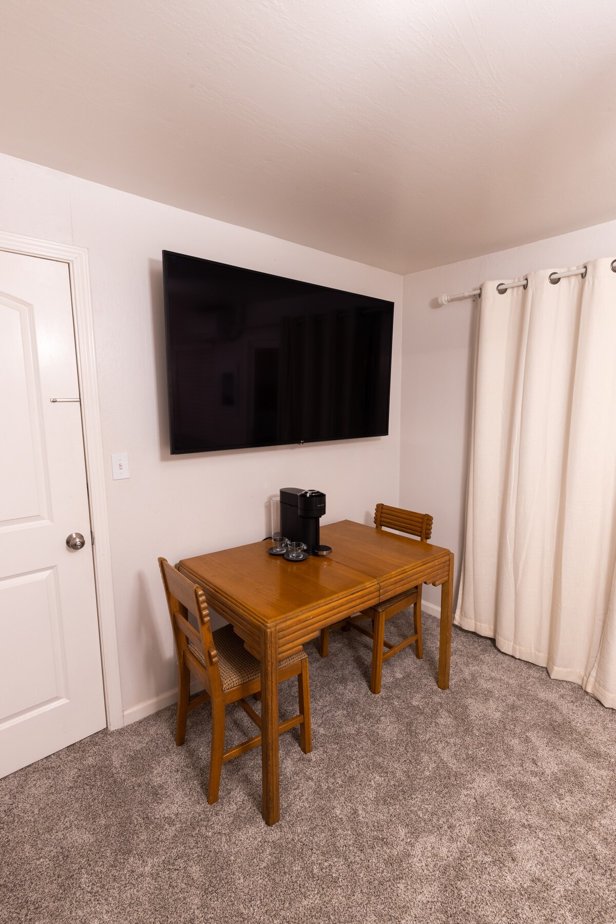 Una entrada privada conduce a una habitación espaciosa y soleada con vistas a jardines encantadores. La habitación tiene una CAMA TIPO QUEEN NUEVA y un rincón enclavado en los árboles. Baño completo, armarios, TV, mininevera y biblioteca. La casa está a pocas manzanas de The Farmhouse Inn, múltiples bodegas, una pintoresca ruta para bicicletas y a pie a la que se accede por nuestro parque local. También estamos a pocas manzanas del río Ruso.