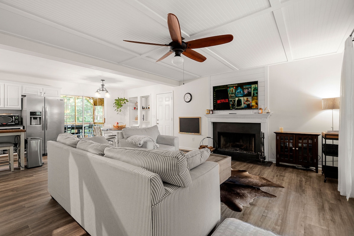 Esta zona está llena de historia, desde el Sendero de las Lágrimas hasta la montaña Sawnee. Esta casa se encuentra a 8 minutos del lago Sydney Lanier. Hay más que un puñado de restaurantes locales y entretenimiento en vivo para mantenerte ocupado. Si te gusta hacer senderismo por la montaña, te lo recomendamos. Puedes salir desde aquí aproximadamente 500 pies colina arriba, paseo inclinado medio hasta el sendero. O si lo prefieres, hay un par de parques de senderos ubicados a 2 o 3 millas con estacionamiento gratuito.