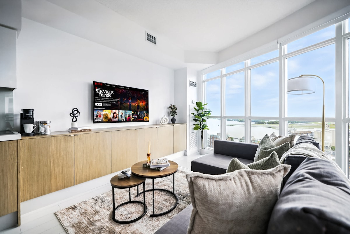 Welcome to your perfect Toronto escape! Bright modern 1-BR condo located in the heart of downtown. We are located across from waterfront parks. Walking distance to Ontario Place, Budweiser Stage, Exhibition Place, Rogers Centre, CN Tower, Ripley's Aquarium, Scotiabank Arena, and Union Station. Steps from TTC, Lake Ontario and Island Airport and has easy access to Liberty Village and King St W. Book now and enjoy a clean, cozy, and convenient stay in one of Toronto’s most exciting neighborhoods!