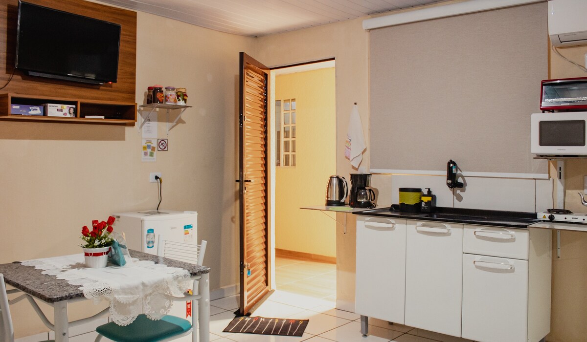 Você não vai querer sair desse lugar charmoso e aconchegante! Quartos com tudo incluso como ar,wifi, micro-ondas, freezer, cafeteira, itens de cozinha, toalha e lençóis, e também secador de cabelo e ferro de passar roupa! Cada quarto possui seu espaço, ao total são 7 no local com área externa compartilhada! Tem lavanderia também. Venha aproveitar seu descanso conosco!!!