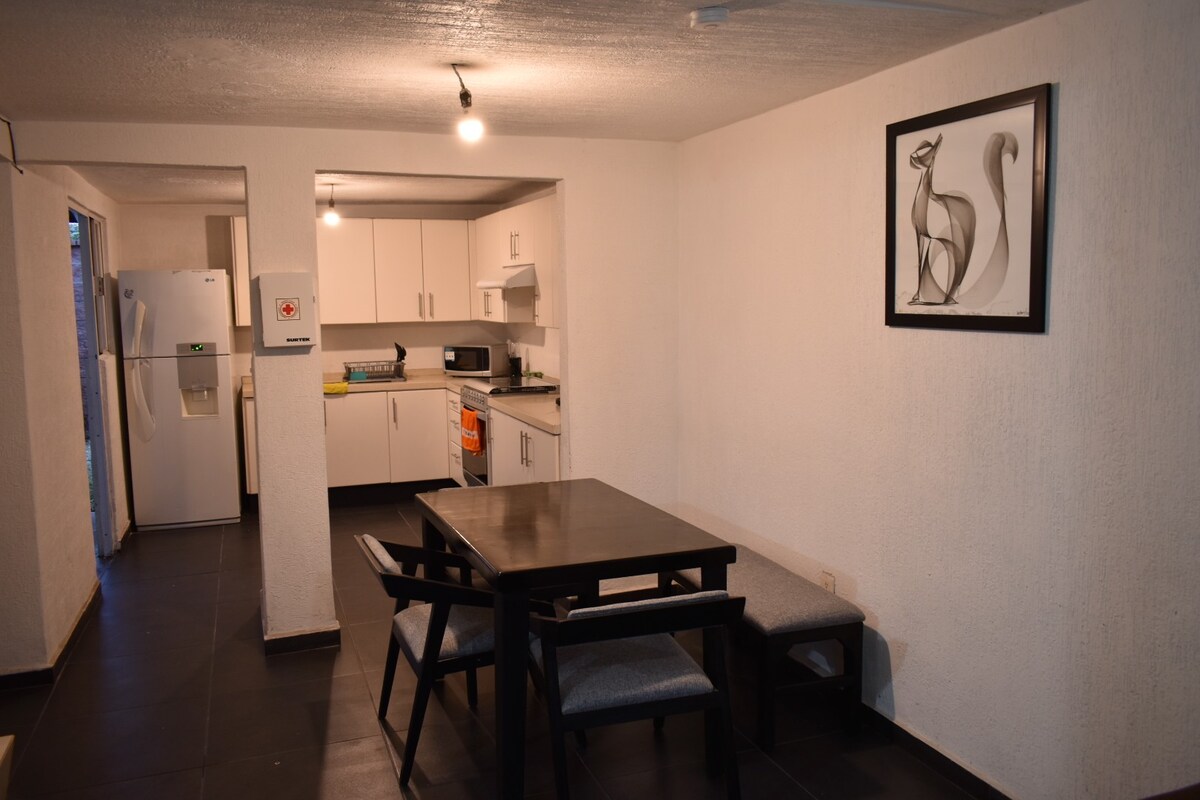 Coto privado un espacio único en confort donde la prioridad es tu descanso con seguridad 24/7. Cerca del aeropuerto de Guadalajara, CUtonala, arena VFG y el hospital civil nuevo ✈️ 15 min del aeropuerto de GDL ⛰️25 min arena VFG 🚌 20 min a la central nueva camionera 🌊 45 min a la laguna de Chapala 🏥 5 min del hospital civil oriente Disfruta de un espacio moderno y equipado, ideal para parejas o familias de hasta 5 integrantes.