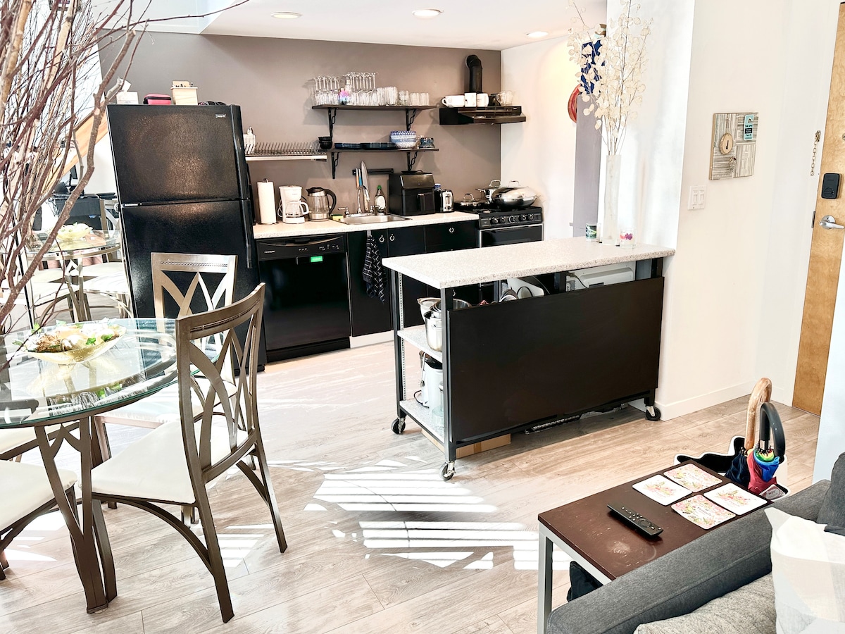 Oasis urbano artístico con cama tamaño king, micrococina, aire acondicionado y piscina