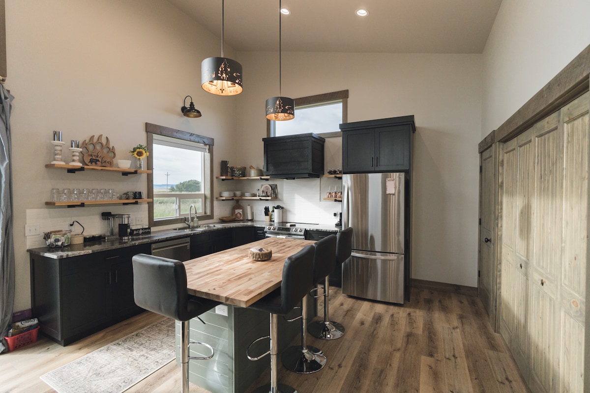 Relájate y desconecta en este alojamiento tranquilo, moderno y elegante. La casa cuenta con una espectacular chimenea del suelo al techo para esas frías noches de montaña. Disfrutarás de las increíbles vistas de la cordillera Teton a través de las 2 puertas correderas de vidrio. La sala de estar cuenta con 2 cómodos sillones reclinables y un sofá cama para relajarse y ver la televisión. Hermosa cocina de concepto abierto y comedor para cocinar. El dormitorio principal y el segundo dormitorio cuentan con cama tamaño queen y la sala de estar tiene un sofá cama.